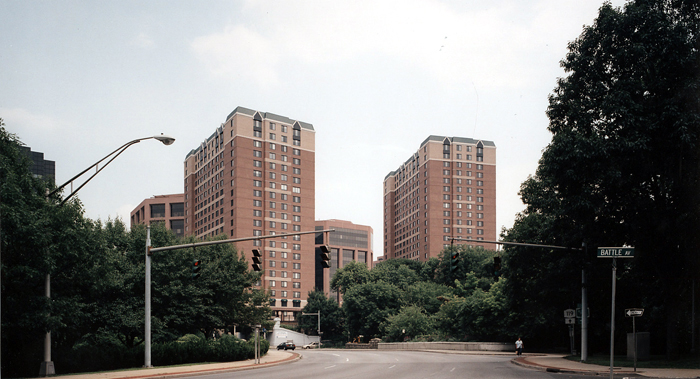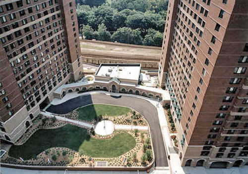 This mixed-use development consists of 500 residential apartments (in 21 and 22 story buildings), a 300 room hotel, street level retail, restaurant and public plaza, and 750 structured