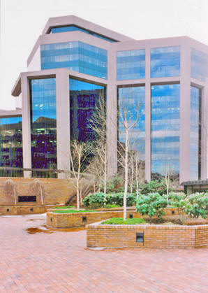 open to and interact with the surrounding streetscape. There are landscaped sitting areas and a raised one-quarter acre plaza that overlooks Main Street.