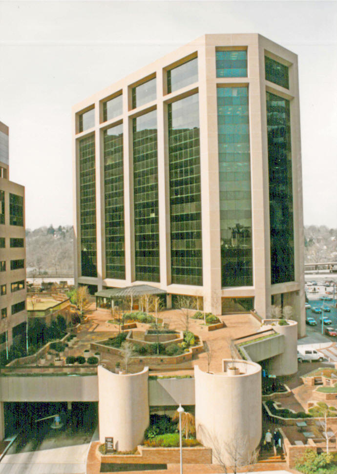 1,033 car parking structure is concealed from view by street level retail. The towers are clustered around a multi level landscaped plaza that covers the parking structure and provides private open spaces for each of the occupancies. The buildings