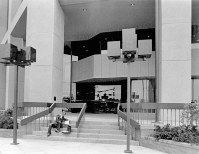 The architecture is characterized by a variety of bold salmon-colored pre-cast concrete forms composing an inviting sculptural landmark at this entrance to the city. American Institute of